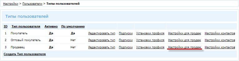 Настройки > Пользователи > Типы пользователей В списке выберите тип пользователя, для которого желаете настроить доступ к продажам (или создайте новый) и выберите пункт